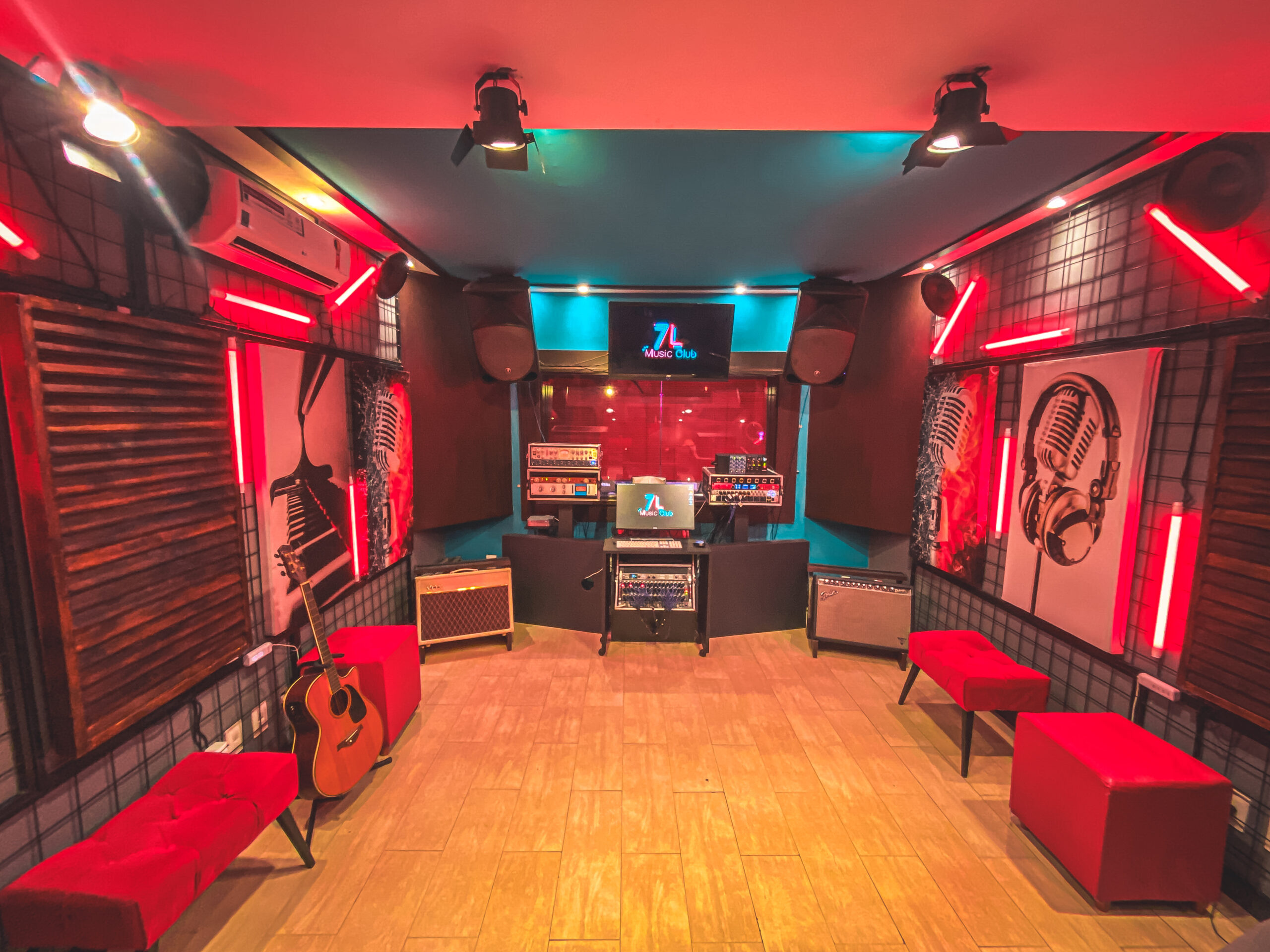 Um espaço com infinitas possibilidades que pode se adequar desde de eventos corporativos como também um palco indoor com 72m2, seus projetos podem ter ainda mais realismo com a banda ensaiando tudo microfonado e ligado a uma mesa de 48 canais com amplificadores, caixas e retornos simulando uma performance ao vivo, e mais, um camarim disponível dentro da sala entregando ainda mais realismo,conforto e privacidade aos clientes.