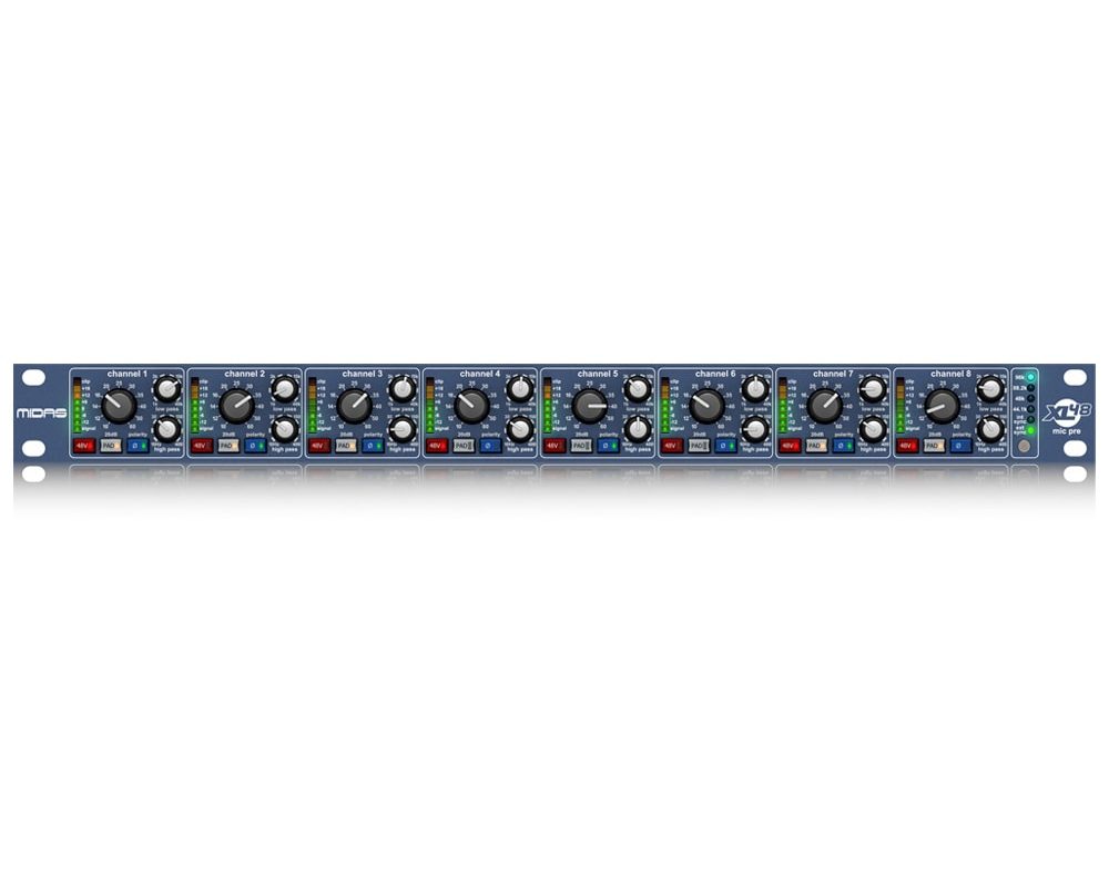 O Midas XL48 é o sistema de pré-amplificação de 8 canais de alta performance no Seven Life Music Club, trazendo o lendário som dos consoles XL4 para o mundo digital. Equipado com os mesmos pré-amplificadores analógicos que definiram o padrão de turnês mundiais, ele oferece um headroom impressionante e uma sonoridade quente e detalhada. No estúdio, o XL48 se destaca por seus conversores AD de 24 bits e 96 kHz, garantindo que a pureza do sinal analógico seja preservada com precisão cristalina. Cada canal possui filtros passa-altas e passa-baixas independentes, permitindo uma limpeza técnica impecável logo na entrada da gravação. Com saídas analógicas e digitais (AES/EBU e ADAT), ele oferece uma integração flexível com nossas interfaces de áudio e sistemas de monitoração. No Seven Life Music Club, o Midas XL48 é a escolha definitiva para capturar baterias completas e sessões de banda ao vivo com a autoridade e o brilho dos grandes estúdios clássicos.